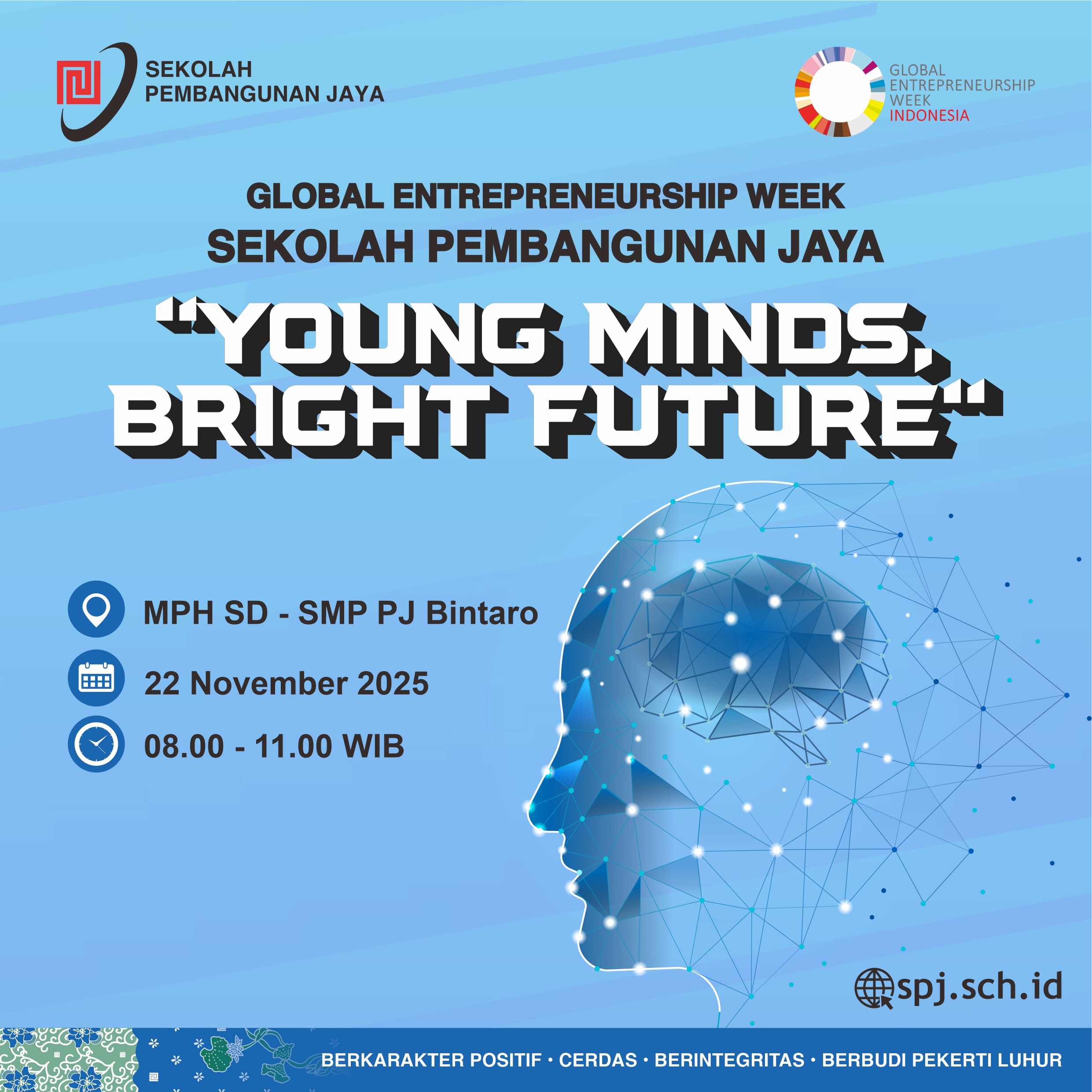 ✨ Sekolah Pembangunan Jaya dengan bangga mempersembahkan Global Entrepreneurship Week 2025 bertema 'Young Minds, Bright Future'